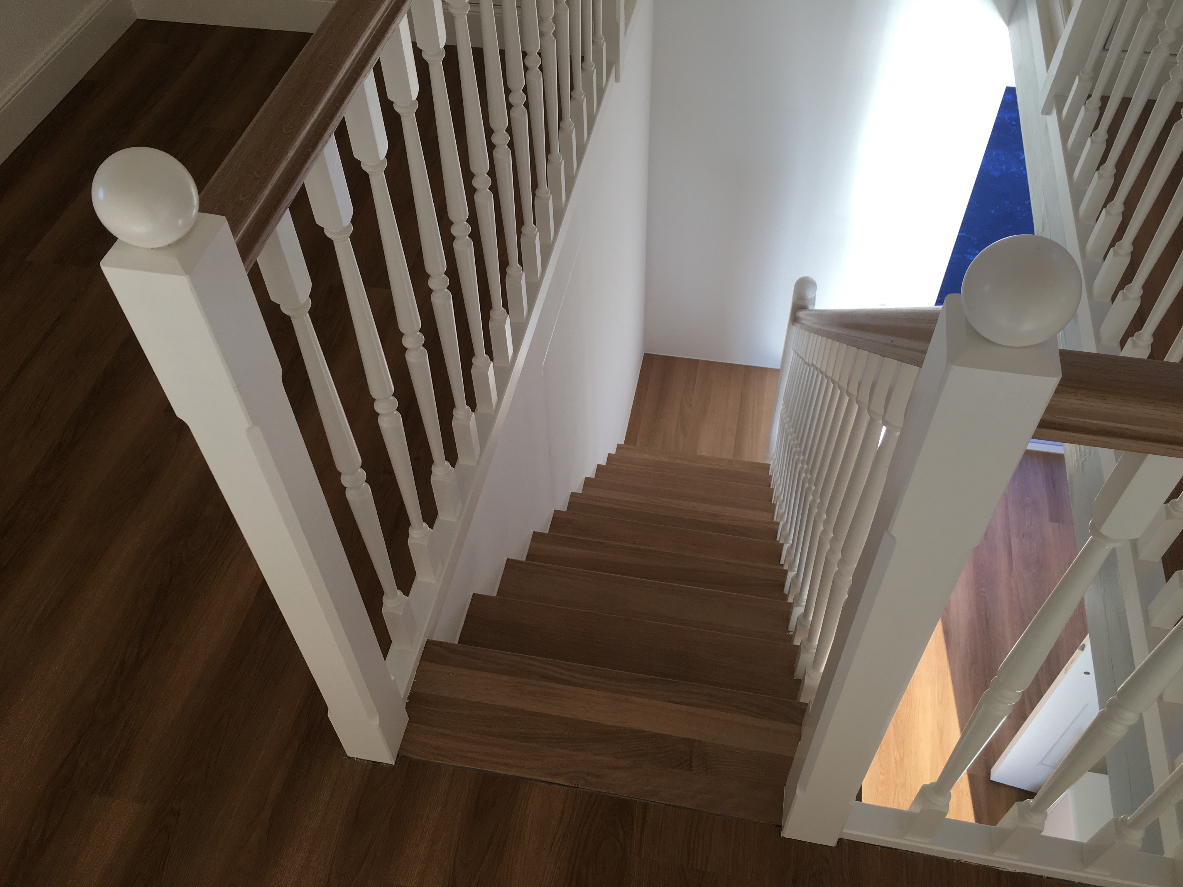 Treppe in Accoya natur. Einfamilienhaus Herrliberg.